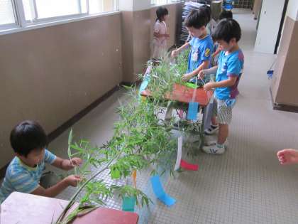 子どもたちは,短冊にそれぞれの願いを込めて,笹飾りを作って飾っていました。