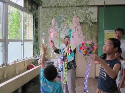 サタデースクールで地域の方から、七夕飾りを教えていただきました。