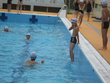 水泳学習の中でペアで教え合っています。少しでも泳ぎが上達するように,一生懸命です。すてきな姿をたくさん見つけました。