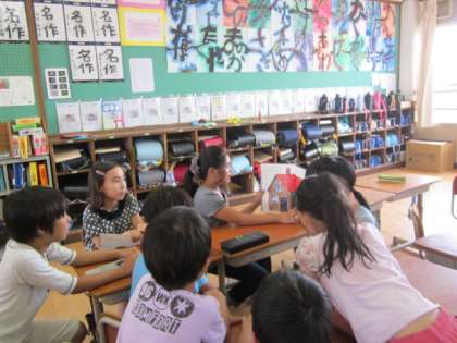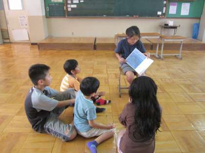 教室は5年生が読み聞かせをしています。