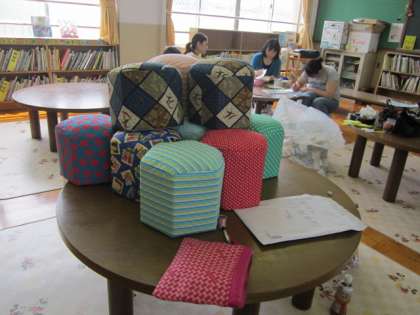 毎年、PTAの学級代表委員のみなさんにお世話になって、わくわくルームの牛乳パックの椅子を作っていただいています。