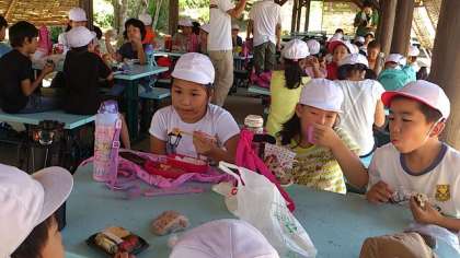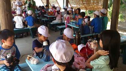 東屋で、お弁当を食べました。いよいよ、活動が始まります。