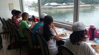 昼食は水族館の中で食べました。カレー、ラーメン、ハンバーグ、うどんなどのセットの中から自分が食べたいものを選びました。これも、班行動です。このあとも1時間くらい見学しましたが、だれもはぐれることなく、最後まで協力して活動できました。