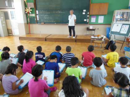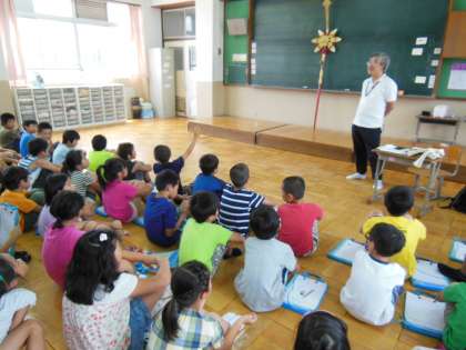 地域の方に来ていただき,剣鉾のことについてお話をしていただきました。