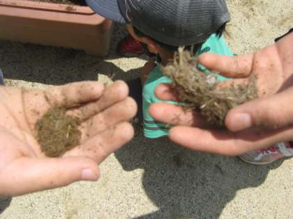 お話を聞いた後は,さっそく肥料を土に混ぜる作業を行いました。