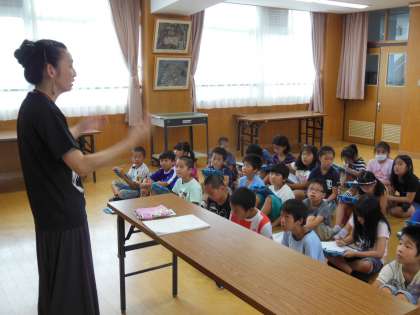 その中で,地域の方の体験談をたくさん話してくださいました。昔は,したいと思った時に太鼓はなかったことや自分と太鼓との出会い,そして感動したことなど,子どもたちに分かりやすく話していただきました。子どもたちも徐々に話に聞き入りながら,精一杯メモを取っていました。