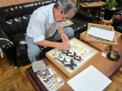 先日、地域の方から、チョウの標本をいただきましたことは、お知らせしたと思いますが、また、少しチョウを加えにきてくださいました。