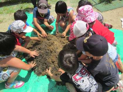 その後、土と肥料をまぜて、プランタに入れ、キュウリの苗を植えました。