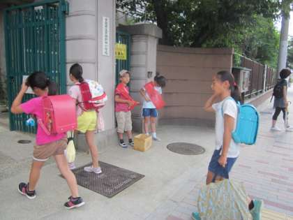 今日は、たすきがなかったのですが、企画委員のお友だちも参加してくれ、いつもより賑やかな校門でした。