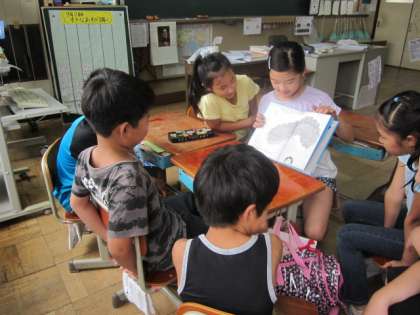 この間もありましたが、運動場で遊ぶグループと教室で本の読み聞かせをするグループを交替しての取組です。今日も、読み聞かせは、5年生が担当です。どの教室もやさしい雰囲気が出ています。5年生もがんばっています。