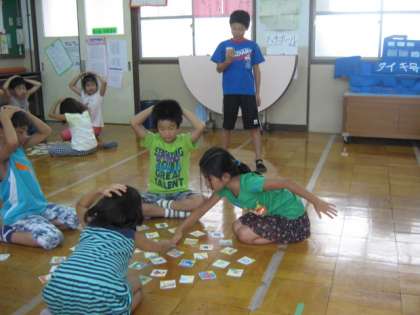 3組の教室にあるものをいろいろ紹介してもらったり,かるたとりの遊びを一緒にしたりすることができました。