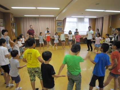 いつも踊っている、「マイムマイム」はイスラエルの踊りだと知っていましたか?いみは、「水、水」。水の少ない国なので、水を求めている踊りだそうです。踊りもほとんど同じなのですが少し違っていました。そして、リズムが速いのです。みんなで踊るとやっぱり楽しいです。