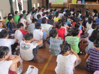 夏休み前、最後の朝会がありました。校長先生から「かっこいいあいさつ」をしている子どもの様子や、夏休みだからこそできることのお話がありました。子どもたちは暑い中ですが、最後までしっかり話を聞いていました。そして、「自分の命は自分で守る」ことをしっかりと確認しました。