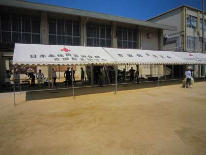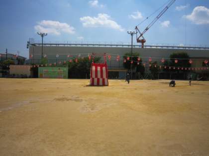 午前中のうちに、やぐらもテントもたくさんの方の協力のもと、立派に立ち上がりました。後はお店がオープンし、楽しいゲームコーナーなどができるといよいよ本番ですね。準備はできているので、後はたくさんの人に喜んでくださるのを、今から楽しみにしています。ぜひ、お越しください。