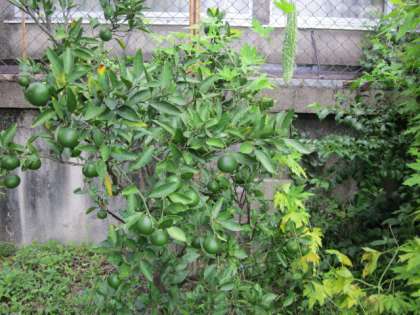 その横にあるみかんの木にも実がたくさんできていました。