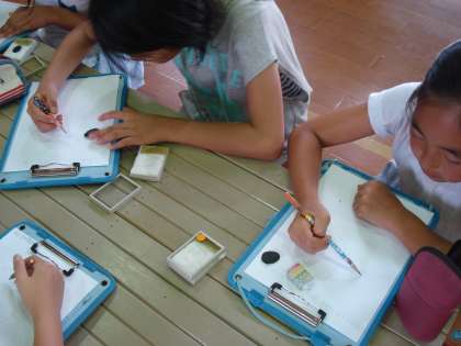「三葉虫」という名前は聞いたことがあっても,実際に見たことはないという児童が多く,1人1つ,三葉虫の化石をじっくり観察させていただきました。