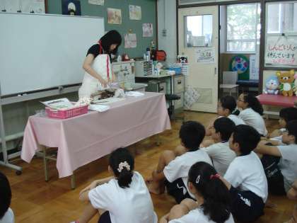 今回は,胃→小腸→大腸の中で,食べ物にどのような変化が起こっているのかを,リンゴやミキサーなどを使って分かりやすく教えていただきました。