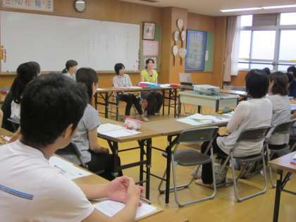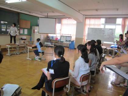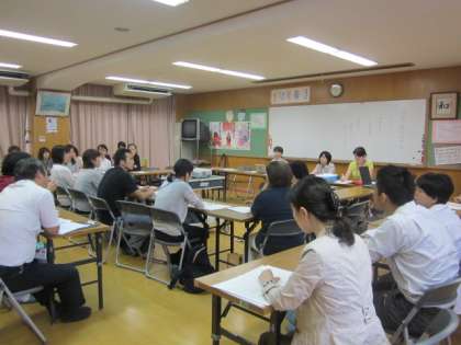 本校には、日本語教室で学ぶ子どもたちがいます。でも、日頃から、担任をもっている先生は、なかなか授業の様子を見ることができません。そこで、授業を公開し研修しました。他校の日本語教室担当の先生がたも参観され、一緒に事後研修会を持ちました。