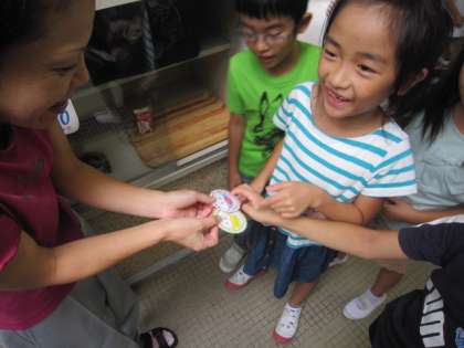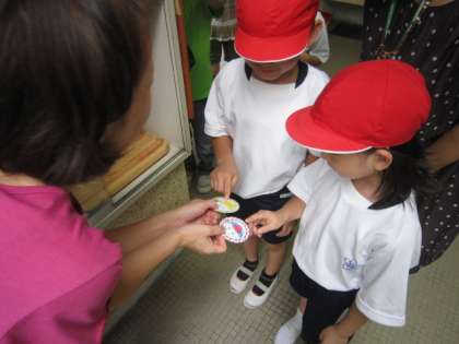 給食室から「ペロリンがかわったぁ〜」と言う声が聞こえてきました。おかずを完食すればもらえるペロリンのカードが一新しました。ピンクっぽいものと緑っぽいのとがあり、給食調理員さんから「どちらにする?」と尋ねられると子どもたちは一瞬固まって悩みます。そして好きな方を指さしてゲット!いっぱい食べて、どんどん集めてほしいです。