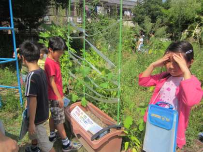 今日、京都新聞の方が、朝刊に連載している小学校の1番を載せる記事の取材に来られました。以前に、動物園と2年生の連携授業(ゾウのフンでキュウリを育てる)を取材に来られた方が、ぜひ小学校の1番でも取り上げたいということで来られました。