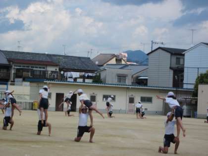 運動場での練習 〜組体操〜