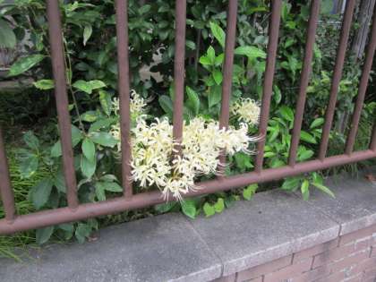 赤いヒガンバナはよく見かけますが、白色は珍しいように思います。