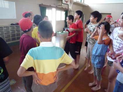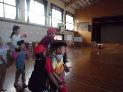 本番の騎馬戦に向けて,赤組は昼休みに体育館で練習をしました。