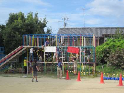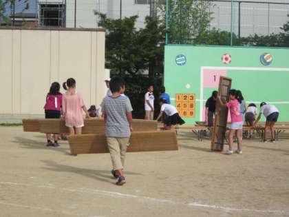 5,6年生で前日準備をしています。