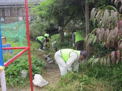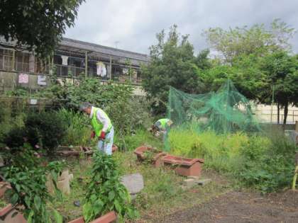 草がいっぱいになっているビオトープの、草引きをしてくださいました。