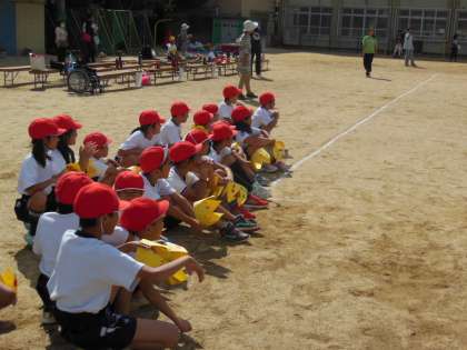 いよいよ「なかよし運動会」。子どもたちは,何気なく過ごしているようでしたが,いざ運動場に出てみると,その表情は,とても緊張しているようでした。