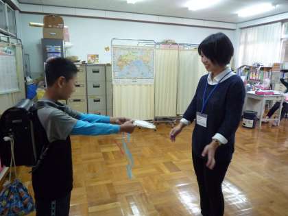 帰りに「ありがとう」の思いを伝えながら,しっかりメダルをプレゼントすることができました。