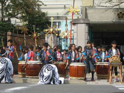 10月12日(日)に吉田神社「神幸祭」で,和太鼓と剣鉾の部活動の子ども達が発表しました。