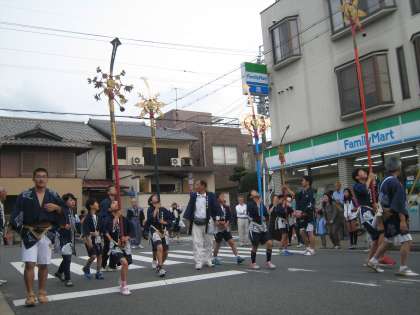 中大路町から吉田神社までの長い道のりを,重い剣鉾を交替しながらも,差して歩いていた子ども達の姿は本当にかっこよかったです。