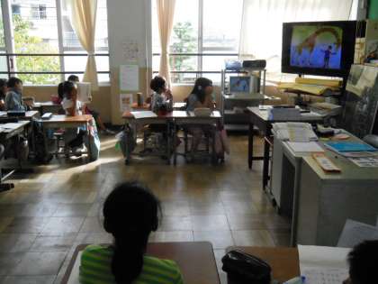 参観授業は,英語活動。初めて出会う表現が出てきました。子どもたちもウィル先生のまねをしながら,楽しみながら活動していました。