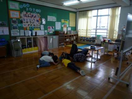 15日(水)のお昼休みにシェイクアウト訓練がありました。