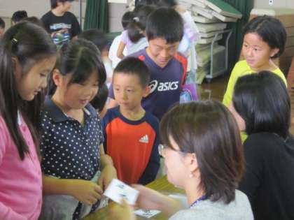 今年度2回目の「にこにこイングリッシュ」が行われました。今回のテーマはハロウィンにちなんで、グループで「ハロウィンで学校をかざろう」でした。今回は、9名の英語ボランティアのみなさんにお世話になりました。初めは緊張気味でしたが、英語を楽しく、子どもたちから積極的に話しかけてくるようになってきましたと感想を言ってくださいました。