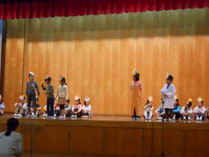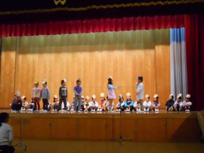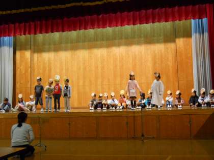 四錦の2倍以上の広さの体育館でしたが、大きな声で堂々と演じあげた子どもたち。