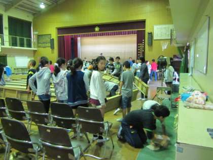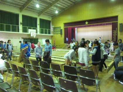 準備は、5,6年生が分担して、長椅子を並べたり、体育館周りを掃除したりしました。