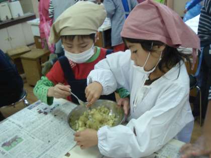 自分たちで育てたサツマイモの調理は