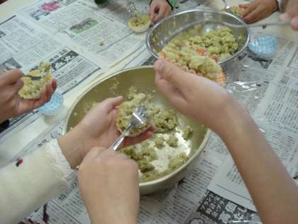 ふかしてつぶして,少しだけお砂糖を入れて…