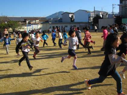 今朝は、一段と冷え込みが厳しかったですが、子どもたちが走る頃には、暖かくなってきました。