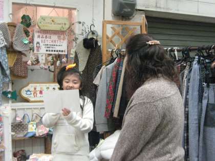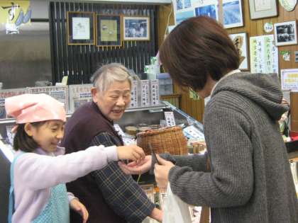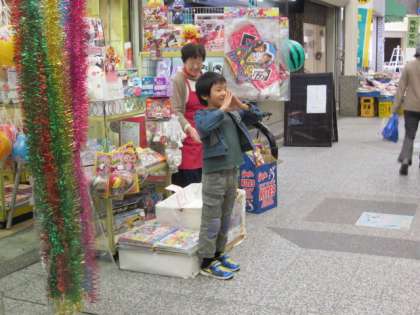 販売体験でお店の前に立たせてもらって,初めの方は,大きな声を出すことがはずかしかったようですが,だんだん慣れてくるうちに,「いらっしゃいませー」の声が商店街のアーケードに響くようになりました。