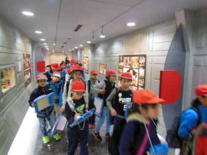 工場では,3D大画面による,コーラの始まりの画像を見たり,コーラの歴史のトンネルをくぐったりしながら,工場の製造ラインの見学に行きました。