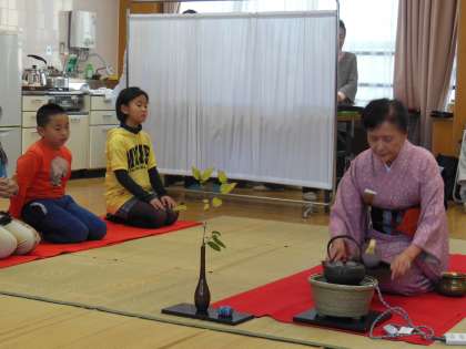 地域の方に来ていただき,茶道体験をしました。子どもたちに聞いてみると,初めて経験することが半数ほどで,どこかで一度は経験している子がいました。