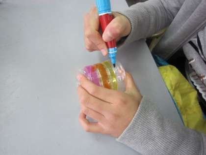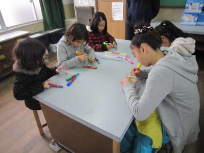 今日のサタデースクールは,同志社大学の学生ボランティアさんに来ていただき,キャンドルライトづくりをしました。用意していただいたペットボトルにマジックで絵や模様を書き,入れ物を作りました。それぞれにきれいな作品ができあがったと思います。できあがった作品は,同志社大学の新町キャンパスで行われる新町祭で展示されるそうです。後半はボランティアのお兄さん,お姉さんにも入ってもらって,ドッジボールを楽しみました。