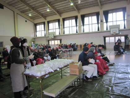 体育館では、「避難所訓練」が行われ、たくさんの方が真剣に災害時のことを思い浮かべて訓練をされていました。