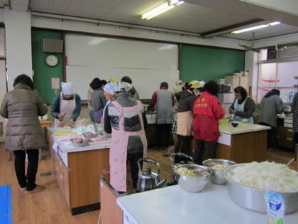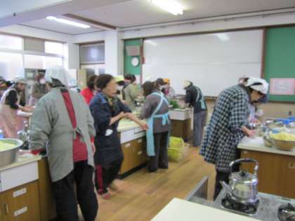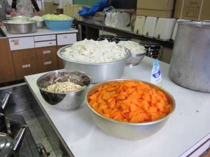 家庭科室では、炊き出し訓練の豚汁の準備です。