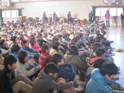 今日の1時間目は、体育館で「ふれあい集会」でした。『あしなが』というお話を校長先生が読み聞かせをされて、そこからいろいろと考えました。