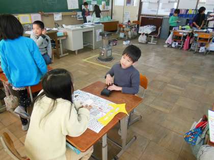 3年生が,総合的な学習の時間に,剣鉾や和太鼓のことを学習してきました。それらについて調べたり,おしえてもらったりしてきたことを全校に発表する日が来ました。