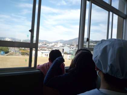 子どもたちは見入るようにはしゃぎながら,空を眺めていました。